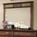 Unique slate inserts give this mirror its own character. Slates feature beautiful natural colors that perfectly complement the brown cherry finish. Full extension drawers are an added touch to the elegant and transitional design.