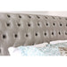 NOELLA Cal.King Bed, 113"L X 80 1/2"W X 53 1/4"H, 237.16lbs. Equipped with slat kits, this padded gray fabric bed is available in three sizes, each of which enhance the scrolled sleigh structure and deep button tufting. The delicate curved design is accented with crystal-like acrylic buttons and trailed by shined nailhead trim.