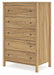 This chest of drawers puts the dream of a casual bedroom retreat beautifully within reach. A warm light brown finish over replicated hickory grain exudes a homey vibe. The smooth-gliding drawers are packed with storage possibilities. It’s a simply relaxed way to achieve the look you want to wake up to every morning.