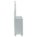 Transform your bedroom with the transitional elegance of our six-drawer dresser and its accompanying mirror. The dresser's vibrant silver metallic finish and fret work detail on the front panels exude modern glam, while the crystal-like pulls and black felt-lined top drawers add a touch of luxury. Delicate bun feet complete this exquisite dresser, making it a stunning showpiece. The rectangular mirror, with its decorative fret work frame and beveled edges, enhances the glamor and radiates sophistication, perfect as a standalone piece or paired with the dresser.