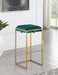 Sleek and sophisticated, these two modern glam stools offer a refreshingly chic style for bars and countertops. Slim, gold metal frames embrace the foam padded cushion, offering a comfy place to rest as you unwind and converse with guests and family. The square cushion tucked within offers charming details like button tufting and is upholstered in a plush velvet fabric for a supremely soft touch. Slide these stools up to your dining space with the slender sled base. A footrest in front offers extra support.