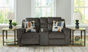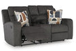 Indulgent comfort meets fashion-forward flair in this reclining loveseat with console. Its luxuriously soft upholstery and captivating color show off your cozy yet smart style. Sleek track arms infuse a modern sensibility, while the striking accent pillows make this piece even more inviting. Simple pull tab reclining puts endless relaxation within easy reach, whether you're lounging solo or with friends. Cup holders and hidden storage complete the experience.