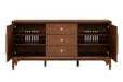Mid-Century Modern Walnut Solid Wood, Rubberwood, Walnut Veneer, Engineered Wood Upholstered Headboard w/ LED Reading Lights Gold-Capped Legs Ball...