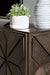 Entertain the possibilities with this extra large TV stand. Proving that furniture can be an art form, this sleek, chic cabinet stand—which accommodates up to 75" TVs—stands out from the crowd with a geometric overlay design that incorporates so much dimension. Adjustable shelving and cutouts for wire management make it highly accommodating. What's more, this TV stand works equally well as a dining room server or entryway console. How's that for staying power?