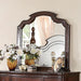 Fitting a classic yet modern bedroom suite, this charming mirror features an intricate profile with unique curves. Finished in a warm, inviting brown cherry.
