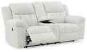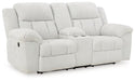 With its large-scale design, this extra-spacious reclining loveseat with console is a masterclass in accessible style. Plush, ultra-soft upholstery keeps everyone cozy as you lounge with family or guests. In a neutral hue, it seamlessly suits different aesthetics as your taste changes. Time to relax? The loveseat's pull tab reclining allows you to mellow out with ease.