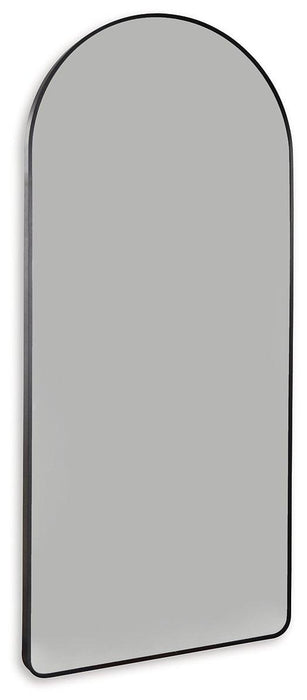 Beauty reflects in contemporary style with this floor mirror. Its black-finished metal creates a lovely curved frame. Standing almost six feet high, this mirror makes a case for statement style.