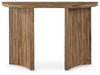Showcasing an elevated, artistic silhouette, this sofa table expertly blends modern form and function. Its warm brown finish highlights the stunning wood grain, bringing an earthy element to staging your decor or a sofa-side lamp. Complete with a thick, substantial top, it’s a naturally beautiful living room staple in the making.