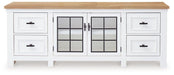 - Large 2-door center cabinet with metal window sash details and adjustable shelf