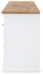 - 2-tone finish (white finish; butcher block oak veneer top with natural finish)
